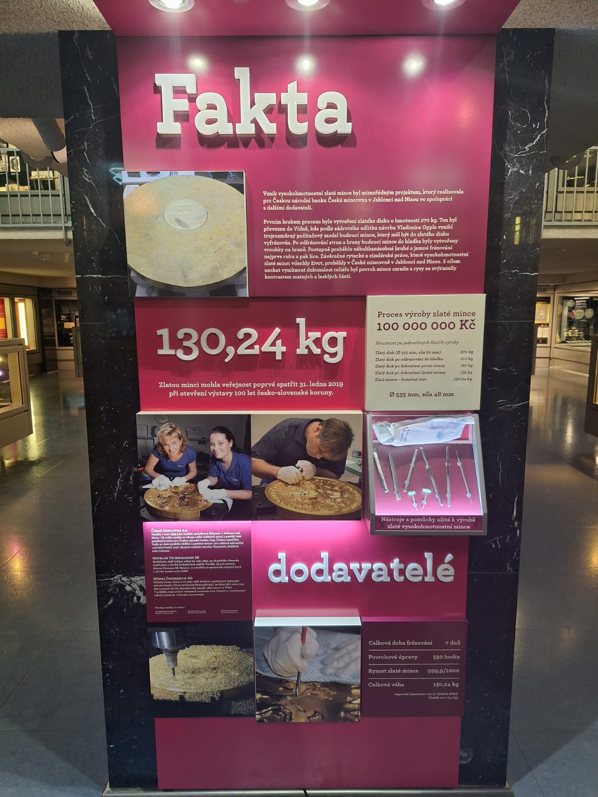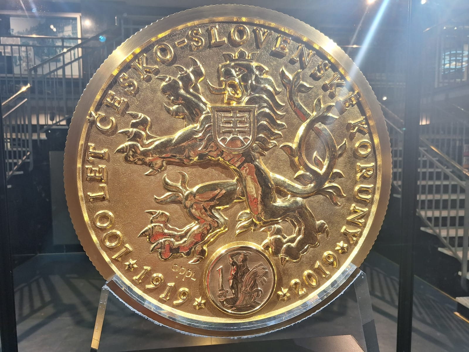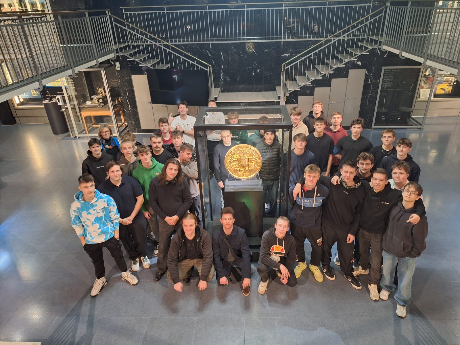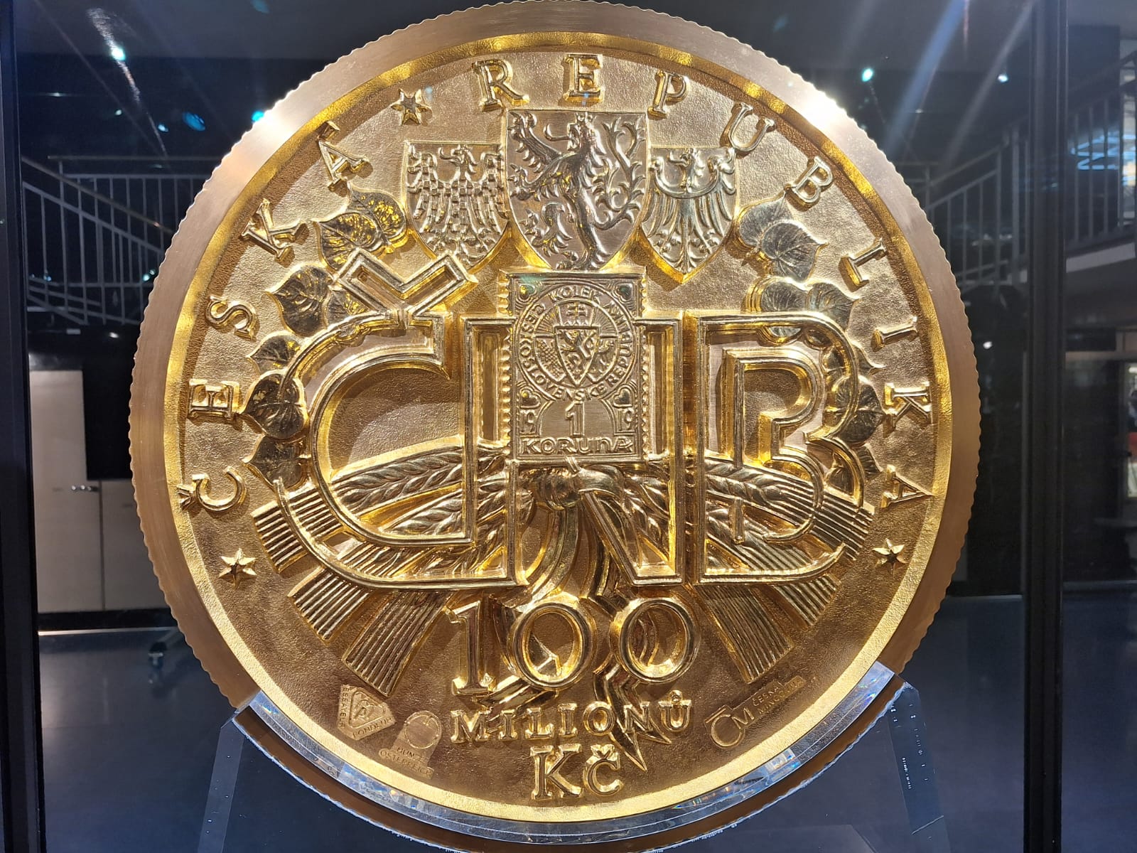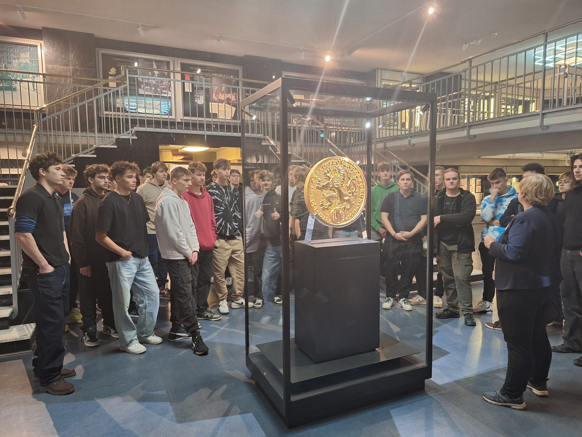 Závěr exkurze patřil opravdové raritě – unikátní zlaté minci o nominální hodnotě 100 000 000 Kč, kterou ČNB vydala v roce 2019 k výročí 100 let československé měny. Tato mince je největší zlatou mincí v Evropě a druhou největší na světě.