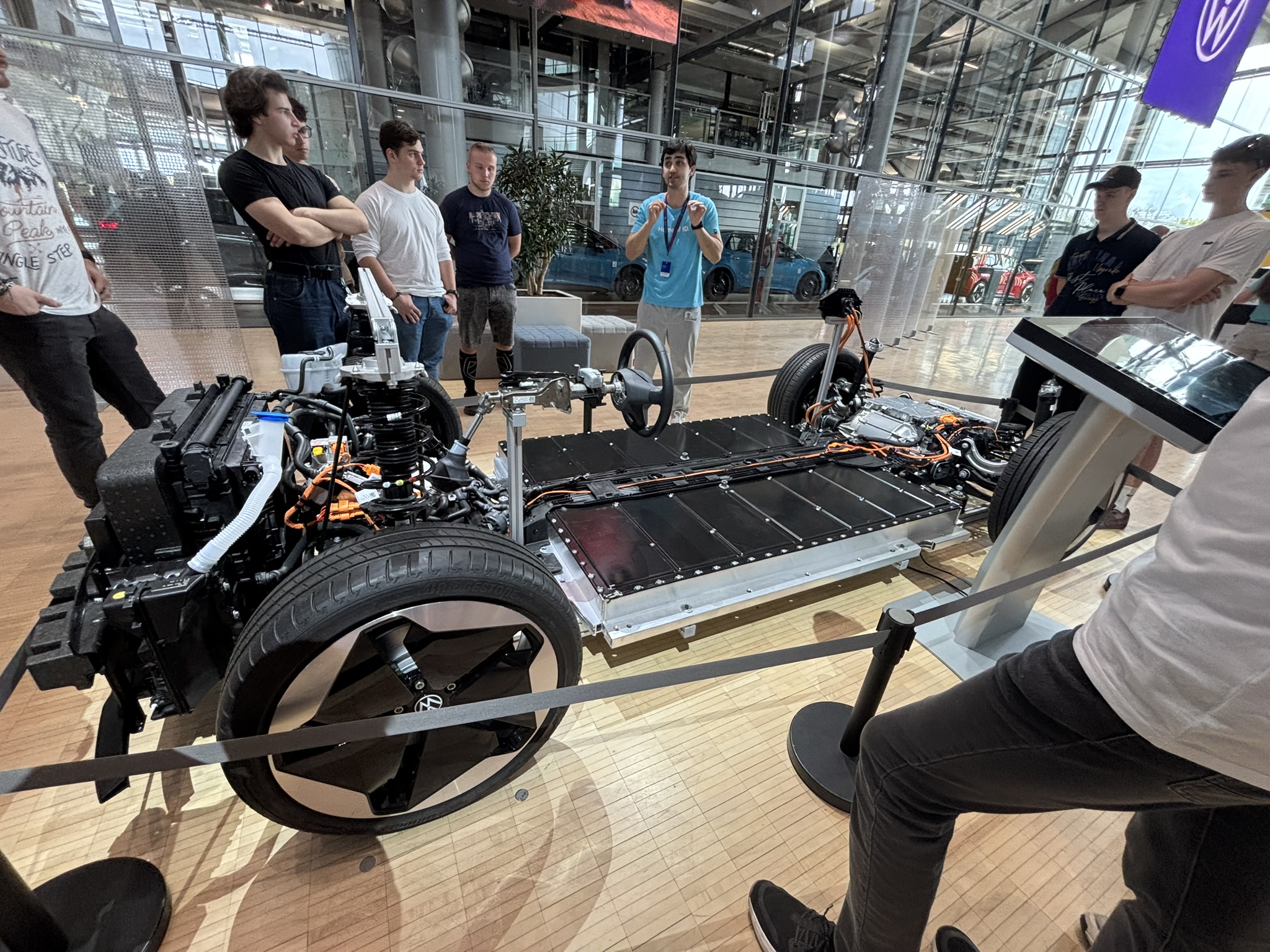 Dne 14.4.2025 se studenti tříd A2.M a A2.E, oboru automechanik a autoelektrikář, doplněni o studenty z tříd E4.K, E1.K, oboru mechanik elektrotechnik a studenti třídy E2.L, oboru elektrikář, zúčastnili odborné exkurze do Die Gläserne Manufaktur – Skleněné manufaktury Volkswagenu v Drážďanech.