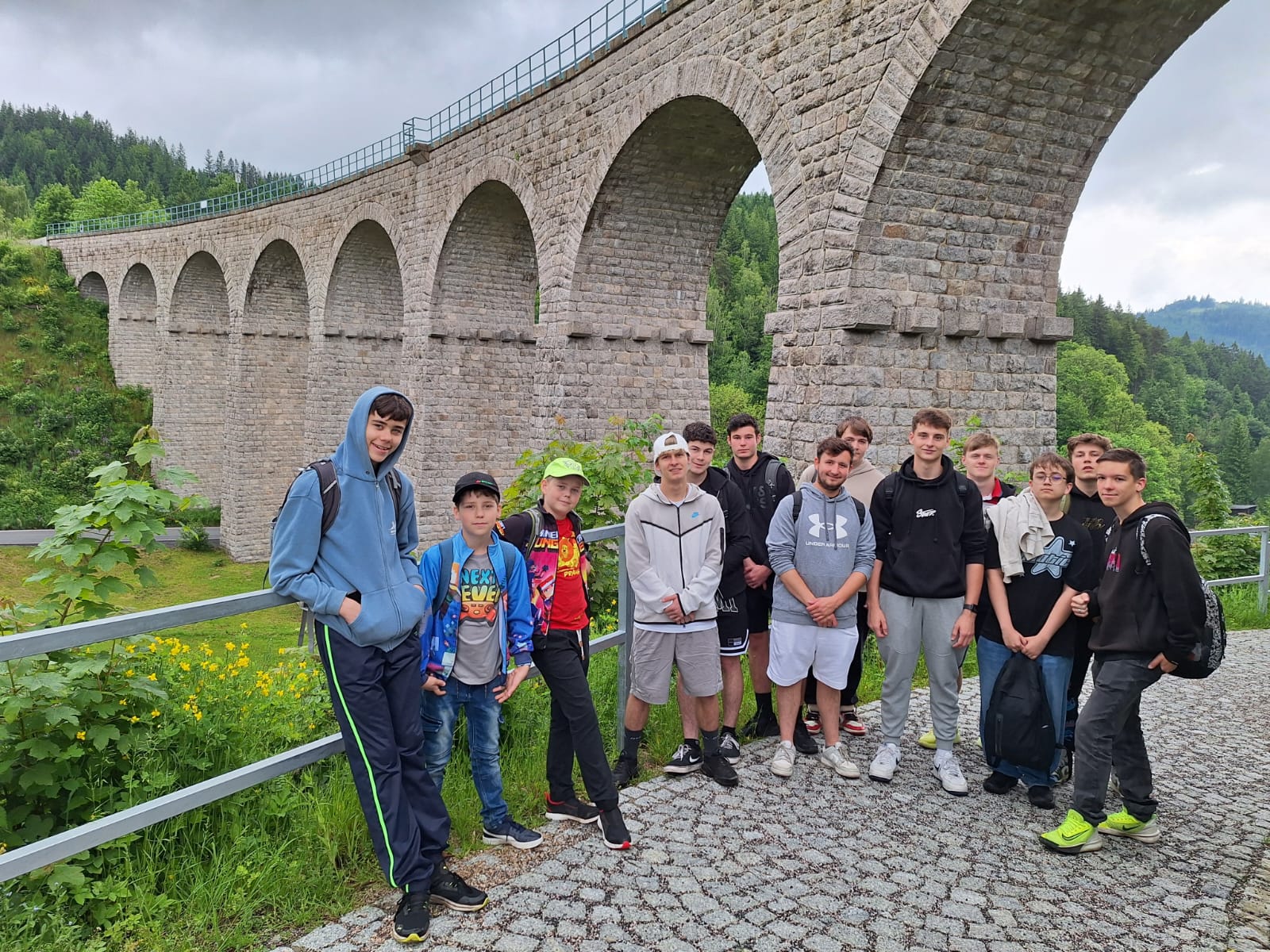 Následně jsme se přesunuli do města Smržovka, kde jsme se nejdříve šli podívat na železniční viadukt. Toto místo bylo stejně jako vodopády více pro vypnutí hlavy a jen obdivování viaduktu. Některým z nás připomínalo hru World of Tanks. Sice jsme tam museli vyšplhat velký kopec, ale stálo nám to za to.