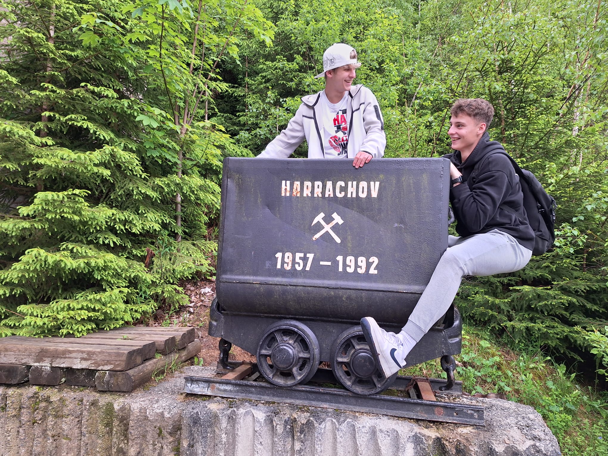 This day was the most difficult. We had many tours, and we had to wake up early. We were in two groups. One group went to Harrachov to visit the mining museum and ore mines. Then they went to the town of Smržovka to visit the Kaipan car factory. The other group did the same but in a different order. In the mining museum, we saw many types of ore, old clothes and tools from the mine. The guide told us a lot about the dangerous work. We saw an old mine cart and a small machine for digging. The mine had 7 levels, 50 meters each – 362 meters in total. We wore safety helmets because the mine was low in some places.